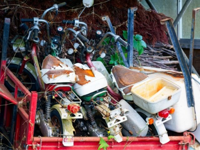錆びたり埋まっていて動かないバイクも、私たちが伺ってお片付けから廃車の手続きまで行いますので、ご安心ください。女性やシニアの方でも安心です。